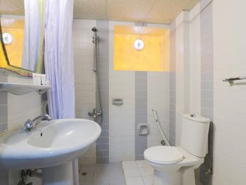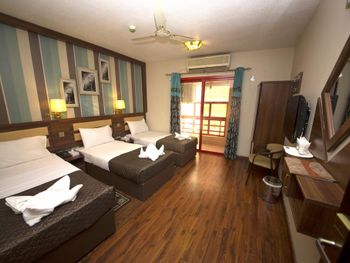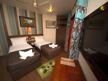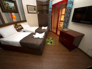 Запах ужасный... Спали с тараканами и мурашами в обнимку. Кровать убитая, дверь в уборную как после войны. Кондиционер как у моей бабушки в деревне, вентилятор еще висит в номере))) Гардины сорваны висят вот-вот на голову свалятся. Дверь на балкон не открывается а если откроется то не закроется. Дверь в номер клинит, не открывается. Туалет душ страшно заходить, клеенка висит вместо стен))) в общем весело.