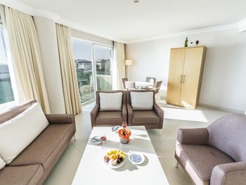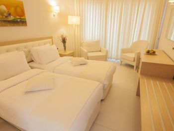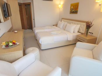Плохой интернет, в номере его практически не было, нет места для курения, поэтому курили везде, даже когда кушали за столиками, еда однообразная! А больше всего впечатлил ланч-бокс, когда рано утром выезжали из отеля, на завтрак мы не попали и нам выдали по одной мандарине, кусочек колбасы, кусочек сыра, маленькая булочка и джем! Ну и у отеля нет собственного пляжа(