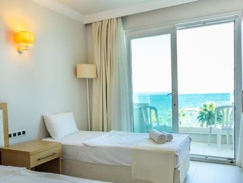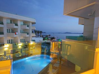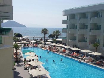 Отель красивый, удачное и расположение, с каждого балкона вид на море и на бассейн. Красивая набережная, по которой можно дойти до центра Тургутрейса.