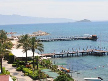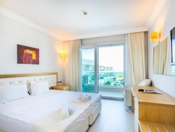 Вид с крошечного балкона тем не менее прекрасный. Первая линия. Свой пирс с шезлонгами и зонтами. Отличная прогулочная набережная от самого отеля до порта Тургутрейса. Еда качественная, желудки не бунтовали. Выбор блюд есть, но меню однообразное. Пиво Туборг, качественное. Вино белое и розовое хорошее. Свой спа-центр, отличная сауна, хамам. Пляжные полотенца. Уборка номера ежедневно, смена полотенец каждый день, постельное белье поменяли трижды за 10 дней. Крыша отеля - это огромная смотровая площадка.