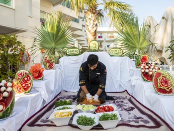 В отеле Dragut Point South работает ресторан «шведский стол».