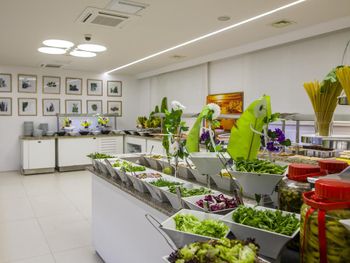Еда стоит на столах без подогрева и быстро остывает и вообще шведский стол скудный детей покормить нечем, все коктейли в баре "No name"- пить то что наливают невозможно, кофе в автоматах просто ужас. Это не 4 * , максимум 2 *. В общем номер чистый, но панорамные окна видимо никогда не мылись. Вай фай не работает. В номере была ванна с гидромассажем, но какого-то детского размера