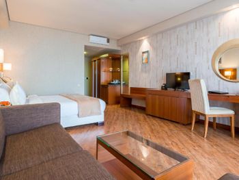 Размещались в номере категории «представительский люкс». Семья из 5-ти человек, места хватило всем. Вполне комфортные помещения, огромная терраса-веранда с видом на двор. Чистое, хрустящее белье, принадлежности для душа и полотенца-все это присутствует. Завтраки вроде разнообразные, но надоели уже на третий день🤷🏼♀️