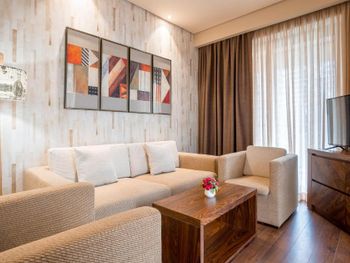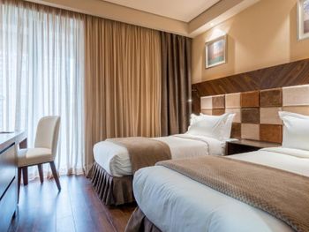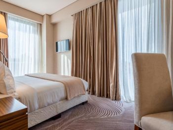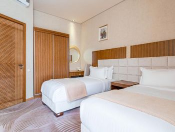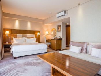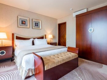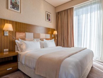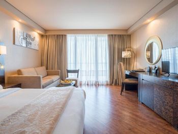 Очень плохой уровень сервиса. При нажатой кнопке «не беспокоить», двое мужчин стучатся в номер И ЗАХОДЯТ в номер с каким-то конфетами в то время как жена одна с ребенком спала. Вечером попросили бокалы для вина, их нигде нет, room service отсутствует, бокалы нам не предоставили, хотя просьба элементарная для любого отеля. По соседству очень шумные гости. Отель совершенно не подходит для семейного отдыха с детьми. В ресторанах персонал с недовольными лицами будто мы приходим к ним домой без приглашения. Рыбный ресторан не работает, ресторан sky наверху тоже не работает. В 23:00 под окнами салют. И днем и ночью под окнами орут, сигналят машины. Бассейны не работали. Персонал на любой вопрос говорит, что ничем на может помочь. Даже пиво в баре возле аквапарка не могут продать потому что у них нет терминала, а наличные они не принимают.