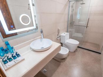 Сделайте для выезжающих гостей душевую и раздевалку, после чекаута оставляем багаж и несколько часов можем наслаждаться солнцем и морем , а потом негде переодется и принять душ, иногда приходитс ждать транспорт. Вам еще расти и рачти. Удачи. Охрана у вас хамы и невоспитанные , нельщя с госиями на ты и понебратски вести себя, это портиь впечатление о вас. Персонал на рецепшене очень приветливые, молодцы.