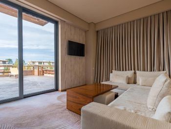 Прямой вид на море с балкона номера. Близость к пляжу. Большой номер, удобный балкон. Хорошие завтраки. На завтраке практически нет гостей. Очень красивая территория с множеством зон отдыха.