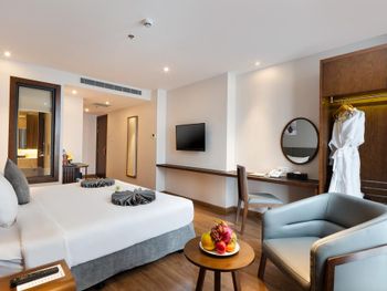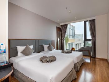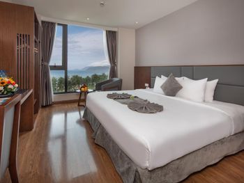 Отель прекрасный. Номер делюкс большой. Вид из окна потрясающий. Уборка номеров, смена постельного белья, полотенец и средств индивидуальной гигиены ежедневно. Персонал приветливый. Завтраки разноообразные- всегда омлет, бекон, фо, фрукты. До пляжа максимум 5 минут. Центр. Вокруг полно магазинов и кафе