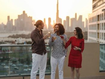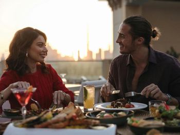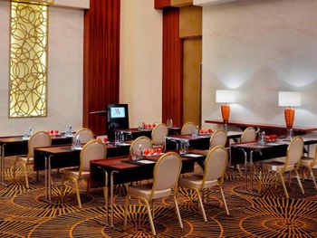 Conveniently order in-room dining through the Mobile Dining app available 24 hours. Dining options include an à la carte menu and an international buffet at The Marketplace. Experience scenic views of the Burj Khalifa skyline while savoring Mediterranean cuisine at TerraMar. Watch your favorite sports and play billiards at BNB Sports Bar, where food and drinks are available to order. Unwind beside the business center at the Lobby Lounge with a warm cup of coffee or refreshing drinks. Kimura-Ya, an authentic Japanese restaurant, offers an izakaya-style dining experience.