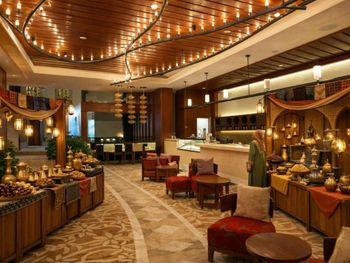 Conveniently order in-room dining through the Mobile Dining app available 24 hours. Dining options include an à la carte menu and an international buffet at The Marketplace. Experience scenic views of the Burj Khalifa skyline while savoring Mediterranean cuisine at TerraMar. Watch your favorite sports and play billiards at BNB Sports Bar, where food and drinks are available to order. Unwind beside the business center at the Lobby Lounge with a warm cup of coffee or refreshing drinks. Kimura-Ya, an authentic Japanese restaurant, offers an izakaya-style dining experience.