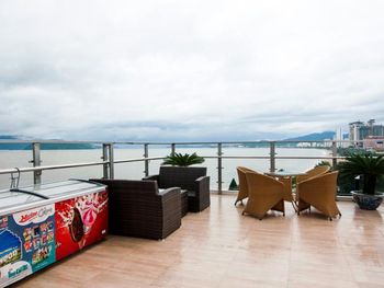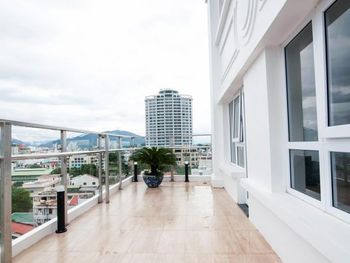 Есть приятные балконы в общем доступе на 8 и 10 этажах с креслами и видом на море и город.