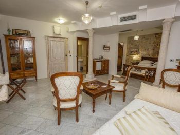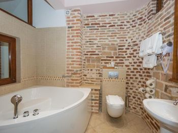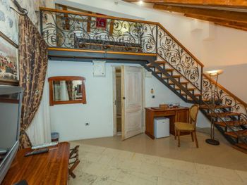Шикарное расположение в самом центре Старого города, очень просторный номер в старинном каменном здании, большой балкон с видом на улочки Старого города, ванна. Были подарочки от отеля в виде бутылки вина, а также блокнота, ручки и проч.