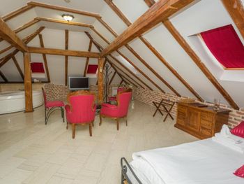 Расположение в самом центре старого города на перекрестке всех улочек. Вид из окон- на площади города, на колокольню, звон колоколов - это прекрасно. Номер очень большой, красиво оформлен. Отличный завтрак.