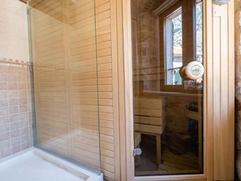 В номере есть сауна, но пользование ей за доп.плату - 40 евро. Душевая не очень удобна.