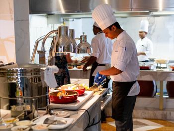 К услугам гостей 5 ресторанов, полностью оборудованный тренажерный зал и спа-салон с отдельными мужскими и женскими процедурными кабинетами. В числе прочих удобств конференц-залы и большой бальный зал.
