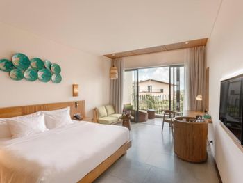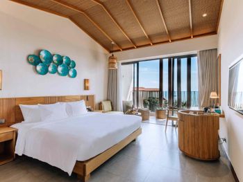 Отсутствие шкафов в номере. Отсутствие приватности в санузле. Номера premier deluxe see view не очень удобны так как входная дверь со стороны дороги. Шум 24 часа в сутки. Слышно через дверь так как все номера находятся на открытой галерее. В отеле ужин стоит 549тысяч донгов на человека. Если выходить из отеля в придорожные рестораны, будьте готовы идти по дороге, так как нет тротуара. Движение очень активное и беспорядочное. Очень грязно! Мы выделили для себя ресторан Cami. И Coffee House над рестораном Роман. Там можно выпить не плохой кофе, так как в отеле кофе отвратительный.