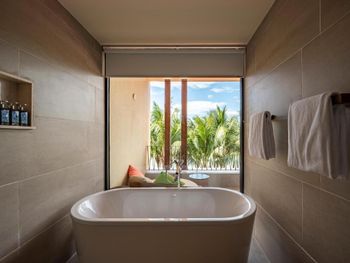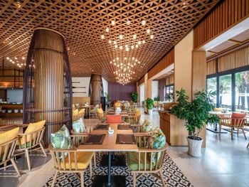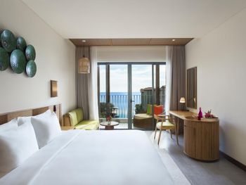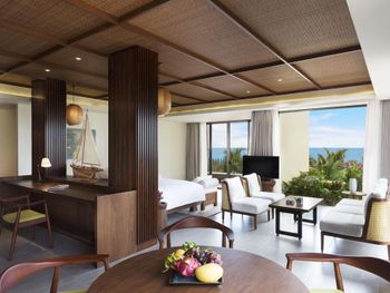 Отсутствие шкафов в номере. Отсутствие приватности в санузле. Номера premier deluxe see view не очень удобны так как входная дверь со стороны дороги. Шум 24 часа в сутки. Слышно через дверь так как все номера находятся на открытой галерее. В отеле ужин стоит 549тысяч донгов на человека. Если выходить из отеля в придорожные рестораны, будьте готовы идти по дороге, так как нет тротуара. Движение очень активное и беспорядочное. Очень грязно! Мы выделили для себя ресторан Cami. И Coffee House над рестораном Роман. Там можно выпить не плохой кофе, так как в отеле кофе отвратительный.