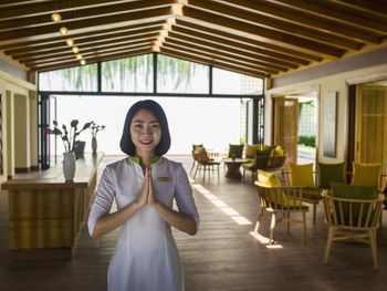 На ресепшн нет обмена и при выезде, если что то записывали на номер, не принииают доллары. Только донги и карты... имейте это ввиду и меняйте деньги заранее перед выездом из отеля
