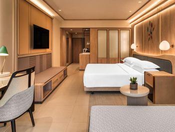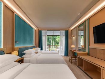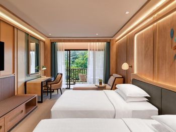 Во всех номерах установлен кондиционер и телевизор с плоским экраном, а также обустроен собственный балкон с видом на тропики. Номера оформлены в тайском стиле. В числе удобств — гостиная зона.