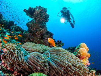 Большой остров с чудесным тропическим лесом, вечером он подсвечен и кажется, что находишься в сказке. Очень неплохой риф, видели и акул, и черепах. Вкусная еда а-ля карт в ресторанах. Отличный дайвинг центр (мы брали си бобы напрокат, водные мотоциклы - покатались прямо с большой стаей дельфинов, ездили смотреть мант). Отличный персонал и менеджмент.