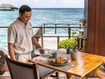 В ресторане The Market готовят блюда интернациональной кухни, а в ресторане над водой Benjarong подают тайские кушанья. В ресторане Sea Grill на пляже можно попробовать приготовленные на гриле морепродукты и стейки. В барах Sand и Sala посетителям предложат разнообразные напитки и закуски. Гостям предлагают разнообразный завтрак, в меню которого входят китайские деликатесы.