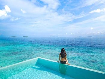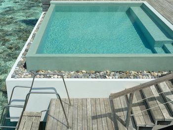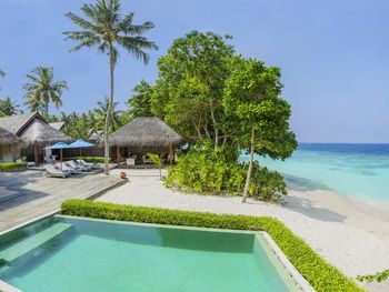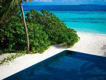 жалко что смыло пляж перед бассейном, немного не хватает лежаков в свободном доступе, для тех кто живет в вилах на воде и не имеет своего пляжа.