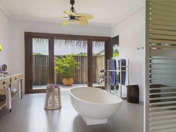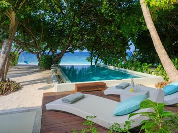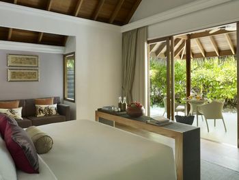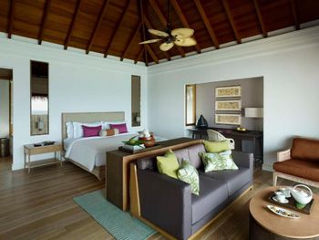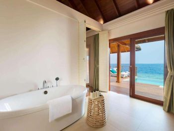 При этом, были существенные минусы нашего пребывания: — плохой вход в океан с виллы, кораллы, камни, все начинается буквально с берега, они создавали огромное препятствие для купания. Если вы хотите насладиться хваленым белым песком Мальдив и беззаботным купанием, то вам точно не сюда. Виллы с 410 по 420 не стоят своих денег, вы будете только наблюдать волны в океане и не иметь возможности в них окунуться. Изначально, нас заселили в виллу 415, сам номер хороший (они все примерно одинаковые), но когда мы вышли к берегу, мы были неприятно удивлены: корни деревьев полностью закрывали возможность комфортного выхода в океан. По нашей просьбе, батлер переселила нас в виллу 419, там выход в целом был хороший, но искупаться так и не получилось, кораллы начинались буквально с берега, мы исцарапали все ноги и оставили эту затею. Стоит заметить, что наши друзья жили в вилле в начале 300, также столкнулись с этой проблемой. Это очень испортило впечатление от всего отдыха, мы не в первый раз на Мальдивах, но такого плохого берега мы ещё нигде не встречали, отелю стоит озаботиться это проблемой, так как приятное купание является невозможным. — на острове очень много вилл, как прибрежных, так и водных, уединения нет — в целом остров достаточно большой, но не очень ухоженный, сухие и подгнившие деревья и листья вокруг, возможно ценители первозданной природы это оценят Немаловажно: Плохая организация доставки на гидросамолёте, 4 часа ожидания по пути туда и задержка на час по пути обратно заставили понервничать, мы чуть не опоздали к вылету, при чем это, как я понимаю, является систематической проблемой. В целом: Виллы без бассейна (а мы и не думали что бассейн необходим на острове) не стоят своих денег, цена завышена, некомфортно в плане плавания в своей зоне. Не рекомендую отель для любителей поплавать и понежиться на белом песочке, что ценно для Мальдивских островов, это явилось ключевой проблемой для нашего комфортного отдыха, при хорошем уровне сервиса в целом.