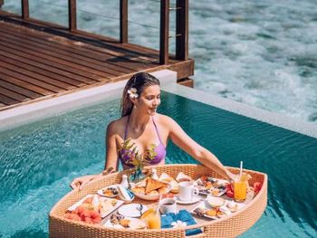 Хороший отель, идеальный риф, очень близко, все рыбки, черепахи, мурены, акулы, все рядом. Заботливый батлер. Номер, вила на воде высокий уровень. Маски, ласты выдают бесплатно
