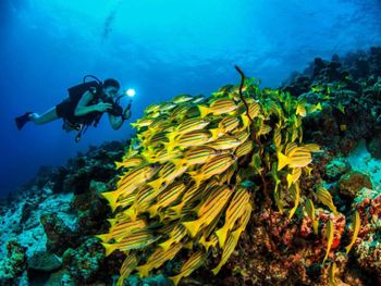 Большой остров с чудесным тропическим лесом, вечером он подсвечен и кажется, что находишься в сказке. Очень неплохой риф, видели и акул, и черепах. Вкусная еда а-ля карт в ресторанах. Отличный дайвинг центр (мы брали си бобы напрокат, водные мотоциклы - покатались прямо с большой стаей дельфинов, ездили смотреть мант). Отличный персонал и менеджмент.