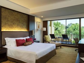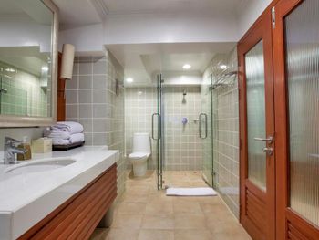 В номере грязно, за 9 ночей ни разу не поменяли постельное белье. Очень низкие потолки. Освещение либо включается все, либо ничего. Ночники не работают. Номер забронирован с видом на сад, в результате предоставлен вид на крышу соседнего помещения с очень шумными вытяжками. И тараканы в номере 5- звездочного отеля -это слишком!