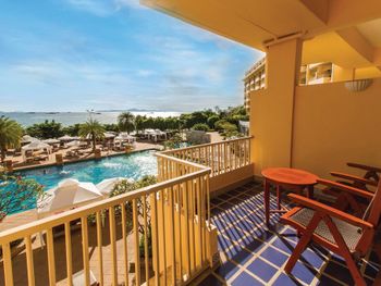 Отель нуждается в реновации. Номера очень устали,особенно санузел. Ванна ужасна,в ней мыться не представляется возможным,только душ. Ковровое покрытие в номере очень грязное(пятна,цвет),нужна чистка. Постель почти не меняют. На за 9 дней меняли только наволочки. . . Очень большая парковка,зато территории отдыха мало. Маленький пляж ужасно чистят,постоянно листья,и мусор на них,разбитый кафель. Спуск к пляжу-лестница. . . Это катастрофа. Она ужасна и опасна.для детей в отеле нет ничего совсем,комната детская почти без игрушек,и там никого нет,оставить ребёнка не с кем.