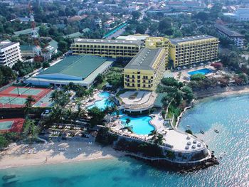 Хорошее расположение, большая внутрення зона с бассейном и садом.Вид на море. В номере было все необходимое : шампунь, ополаскиватель для волос, крем для тела, бритва и т.п.