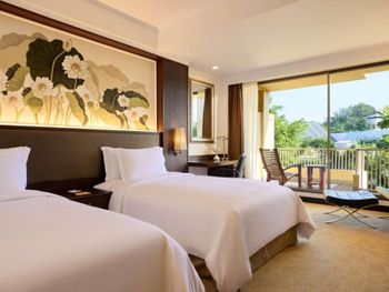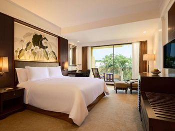 Номера Dusit Thani оформлены в современном тайском стиле. В числе удобств бесплатный Wi-Fi и телевизор с кабельными каналами. Из окон открывается вид на сад или море.