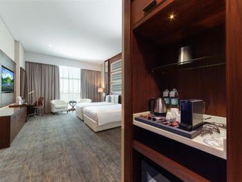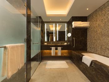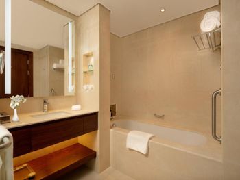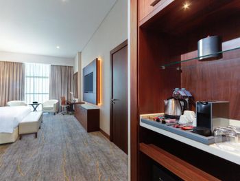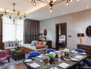 Очень просторные номера, хорошее расположение, валет паркинг. Хороший дизайн лобби, а ещё классное кафе на шестом этаже с отличными ценами и обслуживанием.