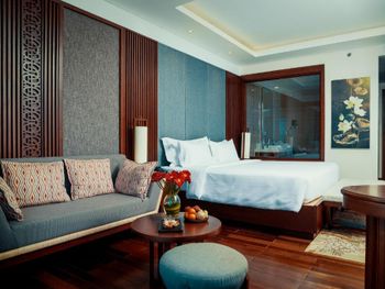Снимали с мужем виллу на несколько дней, после переехали в обычный делюкс номер в отеле! Про виллу - это был сказочный отдых!!! Частный небольшой бассейн, чистая красивая вилла, шикарная природа, частный пляж для постояльцев отеля! Из плюсов - нам предложили ранний заезд, мы спокойно погуляли по отелю и отдохнули, а позже нас переселили в нашу виллу! Для романтического времяпровождения - идеальное место! На территории есть рестораны, завтраки были отличные!