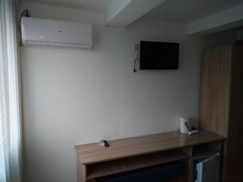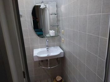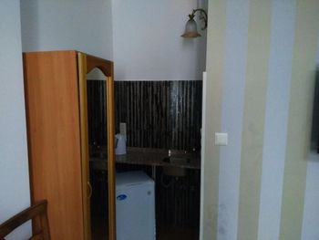 Сразу после заселения обнаружили в ванной огромную лужу, надеюсь вода. Ванная комната ужасная, с бойлера капает вода на тебя, вентиляции нет, ванна шатается, неприкреплена и за нее заливается вода. Смеситель сломан, брызгает вогруг. Далее ужасные скрипучие кровати, под ними вековая пыль. За 3.5 дня ни разу не было уборки и смены белья, полотенец. В номере есть стол перекусить, но на 3 человека было 2 чашки и все, не ложек, вилок, тарелок. Ужасный несъедобный завтрак, очень маленький, без кофе