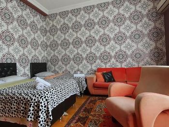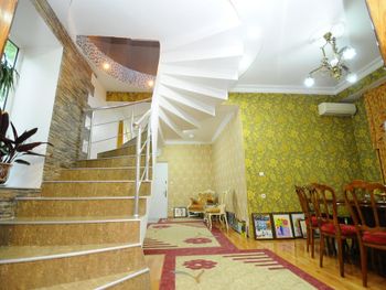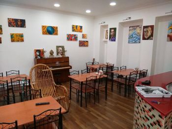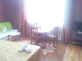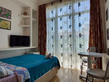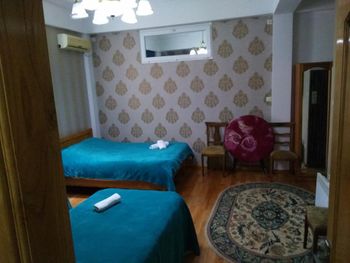 Хозяин очень гостеприимный. Приятное общение. Все рассказал, показал, помог донести вещи. Так же их плюсов можно отметить наличие услуги по стирке вещей (1 пакет обошёлся в 12 лари) и интересный интерьер с картинами на стенах. Завтраки в кафе напротив, домашние, простенькие, готовит и подает сам хозяин с супругой.