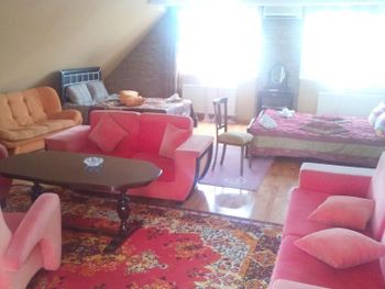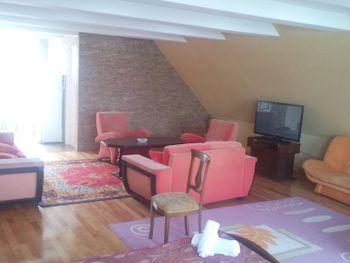 Самый плохой отель за все 6 лет отдыха в Грузии. Хозяин неприятный, жмотяра, сразу сказал кондиционер не включайте и так не жарко. У нас был двухкомнатный семейный номер, на 3 этаже, лестница наверх очень узкая и крутая, с чемоданами и детьми очень неудобно, плюс в том что было два санузла, двери в которых плохо закрывались, вода тоже очень плохо уходила. Столовая в другом здании через дорогу, еда для нас несьедобная бурда, типа разваренный соус с куриными волокнами, один день с картошкой, второй день с макаронами. В столовой у нас УКРАЛИ телефон, стали бегать, искать, звонить, и к нашему удивлению, телефон оказался в кармане у хозяина, он сказал нашел в комнате администратора, куда мы никогда не заходили, зато он подходил к нашему столу, когда там сидели дети. Обходите этот отель стороной будте внимательны, хозяин просто вор.