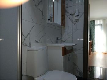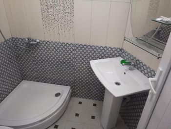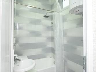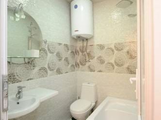 У меня был номер под скосом крышы, и в ванной при среднем росте слегка въехал пару раз в потолок головой. Но ванная красивая в плане дизайна