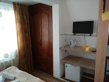 Очень маленькие номера и кровать маленькая для двоих, постельное белье не соответствует, сантехника старая, подтекал кран в ванной комнате, так его и не починили за неделю, мы ставили ведро, но все равно был мокрый пол и запах в номере. Хозяйка Ирина старалась исправить ситуацию, но для этого мало женского участия.