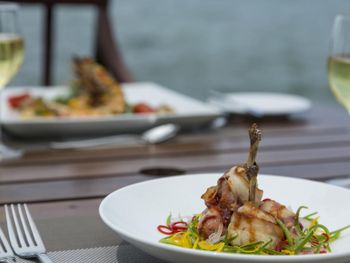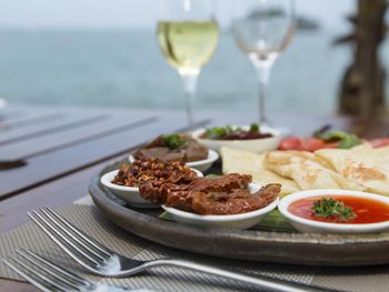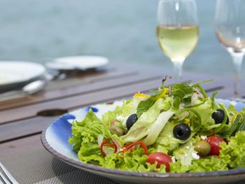 К лежакам могут вынести еду, приятно лежать, пить коктейли с видом на море)