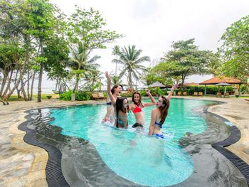 В бассейне настолько хлористая вода, что она реально разъедает кожу. У дочери после бассейна, все вокруг глаз и носа было красного цвета. А я же после плавания в этой воде, покрылась пупырями. ( до этого мы были на вилле, в пригороде Бентоты, так там вода в бассейне шикарная. Без нареканий абсолютно. Хотя ее тоже обрабатывают ночью)