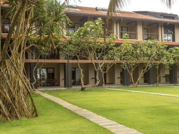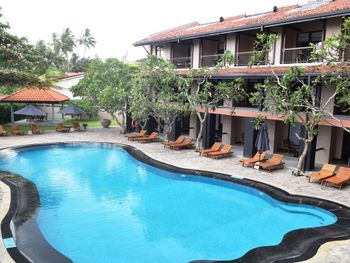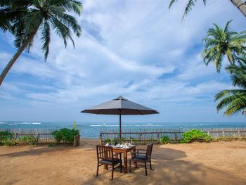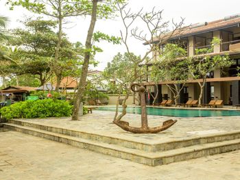 Уютная территория, быстрое заселение, в море можно купаться даже в отлив. Волн практически нет. Красивый вид на море из всех окон. Но не советую брать номера с видом на бассейн - там всегда шумно. Номер обычный. Горячая вода всегда - напор хороший. Завтраки стандартные для Шри Ланки. С голоду не умрете, но удовольствия не получите. Можно так же обедать и ужинать ( шведский стол), но мы ели в кафе Элефант.  Среди отдыхающих много местного населения.