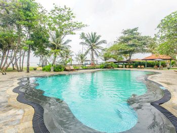 Заезжали сюда на одну ночь. На booking.com бронировали номер с двумя детьми кроватями. По приезду в регистратуре развели руками и сказали что номеров с двумя кроватями у них нет.  оОчень старый замученный номерной фонд. Всё сломано. Везде плесень. Вода из крана воняет канализацией. Пляжный отель но до пляжа надо идти, рядом только риф. Боль и печаль.