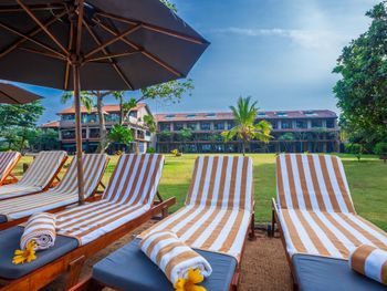 Красивый вид на океан с территории отеля, загораешь на лежаке и любуешься океаном, а вечером - цейлонские закаты.