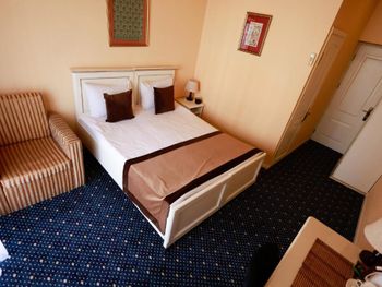 Очень маленький номер и маленькие кровати( не полутороспальные, а намного меньше), допотопный фен в ванной, который разваливался в руках. Ресторан в отеле есть, но еда невкусная, лучше питаться в городе...