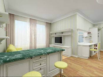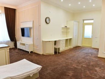 Мебель старая, дверь в ванну закрывалась не с 1го раза. Окна выходили на стройку,где между домами был виден кусочек моря. Довольно шумно от машин и мы жили на 2м этаже,поэтому слышны все разговоры с улицы и хлопанье дверьми машин. В шкафу вешалки были,но в жутком состоянии и перемазанные белой краской. Губка для обуви высохшая,лучше б ее и не было. С одной из сторон кровати было кресло,а не тумба, что не удобно и, соответственно,там не было розетки. В ванне нет никаких полочек или этажерки для своих принадлежностей, поэтому пришлось всё ставить на раковину. И свет в ванне был достаточно тусклым. Зеркало только в ванне, в комнате или шкафу его нет.