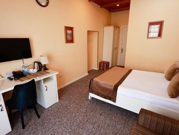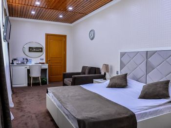 Очень понравилось отношение персонала к гостям , отзывчивые и вежливые работники. Уборка номеров ежедневная, чистые номера. По просьбе могут предоставить утюг, сопроводить до комнаты для глажки, в номерах сейф, шкаф, мини бар. Вода, чай, кофе бесплатно. Завтрак на выбор, в том числе кофе, чай, сок. Вкусно, сытно. Красивая терраса, бассейн на улице (актуально летом).