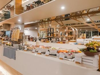 В отеле накрывают континентальный завтрак или завтрак «шведский стол» по расширенному графику. В ресторане, работающем в течение всего дня, подают разнообразные блюда американской и китайской кухни. Гости также могут заказать освежающие напитки и легкие закуски в баре у бассейна.