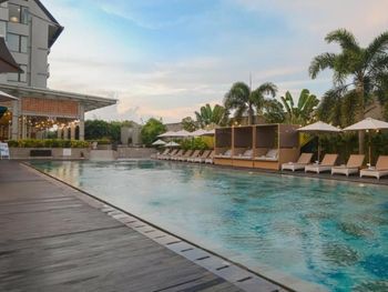 Около бассейна курят, пепел стряхивают в камни у бассейна, ни бармен ни другой персонал это не пресекал, хотя в правилах отеля штраф за курение 1000000 рупий. Также невозможно регулировать тень, так как зонтики вмонтированы в шезлонг и находятся в одном положении