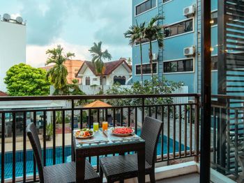 Не понравилось размещение в шумный номер, а именно со стороны улицы. Звукоизоляция никакая!!! Такое ощущение, что твоя кровать находится на улице, где круглосуточно ездят байки, автомобили, гремит музыка, недалеко находится кафе хард-рока, шум, крики!!! На нашу просьбу поменять нам номер в сторону бассейна, который находится во внутреннем дворе, после одной бессонной ночи, на ресепшн попросили доплату 8500 бат за 17 ночей. В итоге, мы так и просуществовали все дни в этом номере. Никому не советую заселяться в номера со стороны улицы, наш номер был на 5 этаже, № 512. Нам никакие беруши не помогли, вместо отдыха - сплошная нервотрепка по ночам! Очень разочарованы данным отелем, вряд ли мы в нем когда-нибудь остановимся.